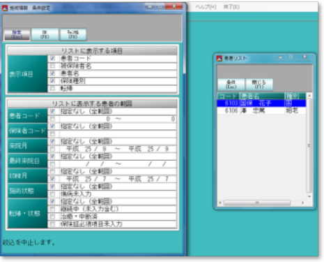 来院月や保険区分などで任意の患者情報を絞り込めます。